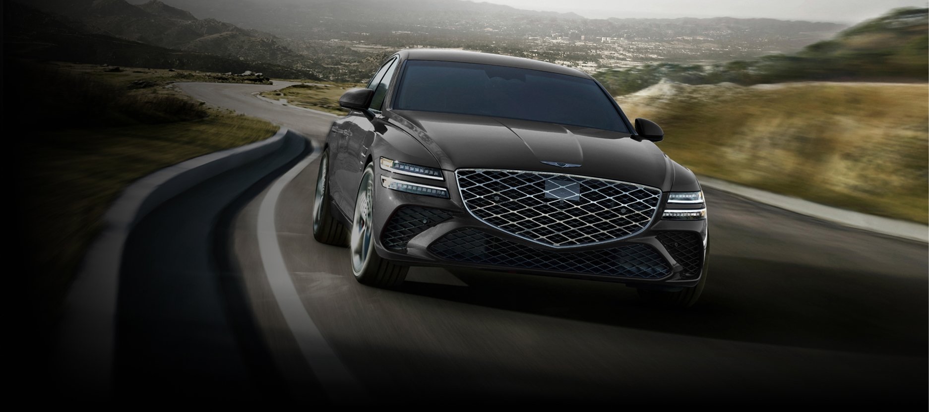 Highlights sophistication with its double-layered G-Matrix Crest Grille, while dynamic molding on the front bumper enhances the overall refined appearance.