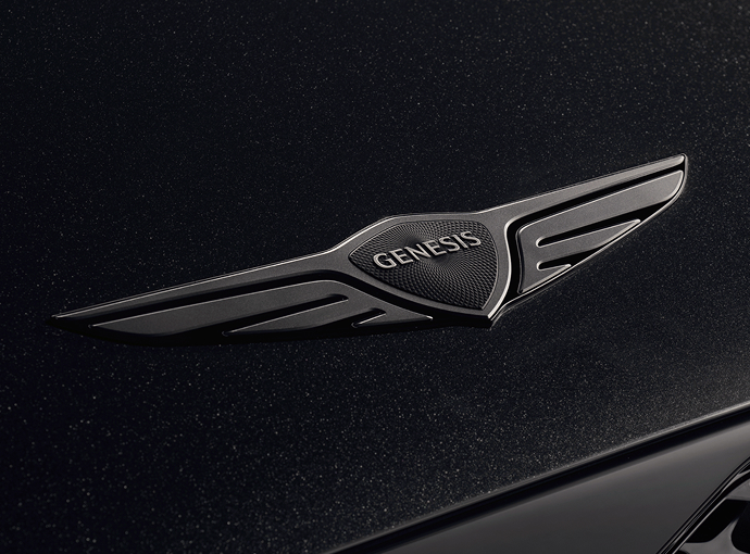 L’emblème en chrome noir incarne la pureté et l’authenticité, illustrant la présence distincte de Genesis.