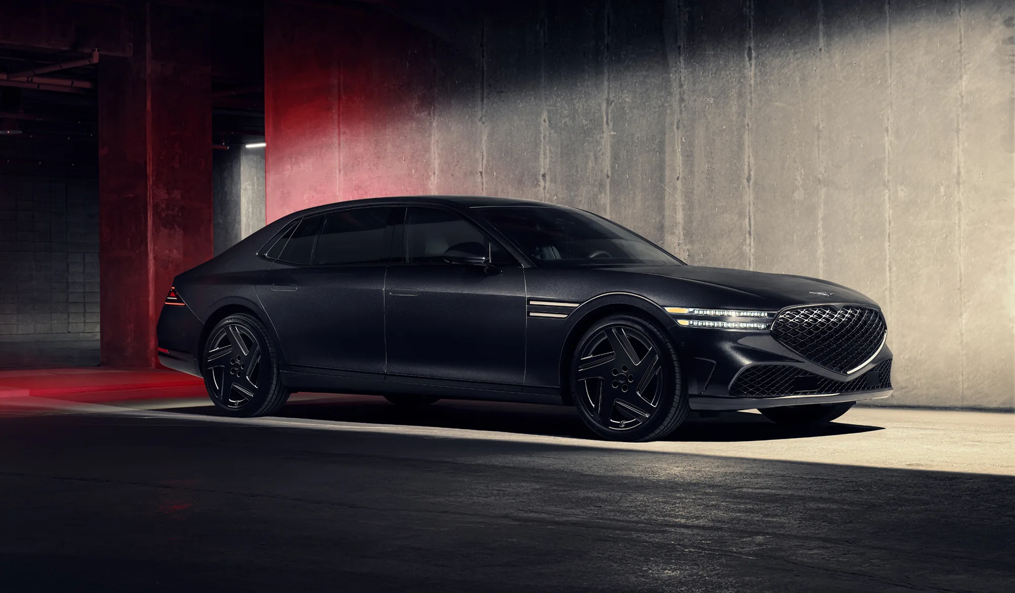 Les marchepieds présentent une teinte noire exclusive, conçue spécialement pour la Genesis G90 Noire. Aucun détail n’a échappé au noir.
